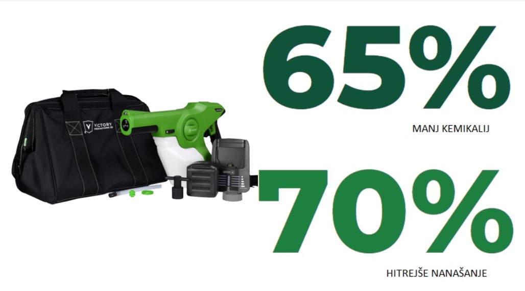 Patentiran elektrostatični naboj prodre skozi kemikalije in zagotavlja tanek enakomeren vzorec pršenja na vseh površinah