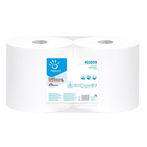 Industrijska rola bela dvoslojna uporabna za čiščenje v prehrambeni industriji.