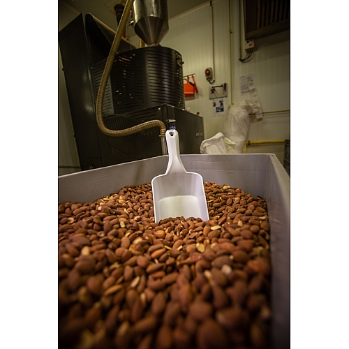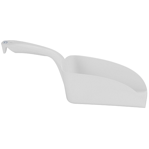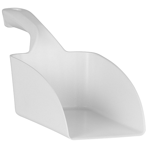 LOPATICA ROČNA SREDNJA, 0,5L. Narejena iz materiala, ki ga lahko zaznamo pod detektorjem kovin. Ta majhna zajemalka je z prostornino okoli 0,5 litra. Ergonomsko oblikovana, lahka in vzdržljiva. Brez težav lahko z njo zajemamo sestavine iz manjših vrečk (npr.: začimbe, moka, riž, led…). Narejena zelo robustno in lahko zdrži močan pritisk. Gladka površina omogoča izredno enostavno čiščenje. Idealna za uporabo v proizvodnji hrane za premikanje sestavin.