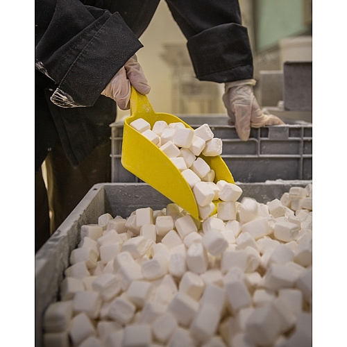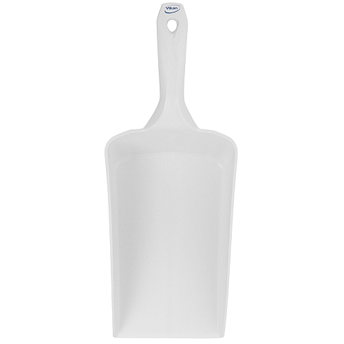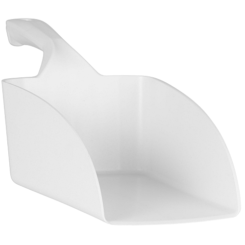 LOPATICA ROČNA VELIKA, 2l. Narejena iz materiala, ki ga lahko zaznamo pod detektorjem kovin. Lopatica s prostornino 2 litra. Ergonomsko oblikovana, lahka in vzdržljiva. Brez težav lahko z njo zajemamo sestavine iz manjših vrečk (npr.: začimbe, moka, riž, led…). Narejena zelo robustno in lahko zdrži močan pritisk. Gladka površina omogoča izredno enostavno čiščenje. Idealna za uporabo v proizvodnji hrane za premikanje sestavin.
