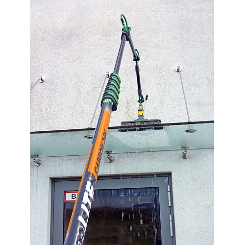 nLite modularno kotno koleno za enostavno čiščenje težko dostopnih površin. Še ena novost in pameten pripomoček za čiščenje steklenih površin sistema nLite teleskopov je tudi modularno kotno koleno, ki je odličen pripomoček v kombinaciji še s štirimi drugimi posamičnimi elementi. Spoznajte novo dimenzjo čiščenja s sistemom nLite, kjer čiščenje težko dostopnih površin kot so nadstreške, paneli sončne elektrarne ali pa zimski vrtovi postane užitek ne pa nočna mora. Kotno koleno vam omgoča nastavljivost teleskopa po meri, da z lahkoto dosežete vsak skriti kotiček steklene površine.