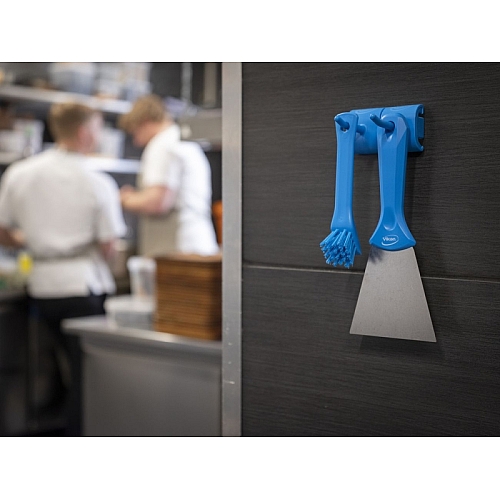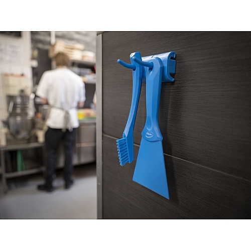 Modul z dvojnim kavljem je zasnovan za obešanje 1-2 čistilnih orodij z luknjo za obešanje ali izdelkov z ročajem v obliki črke D ali T. Kavlji se nataknejo na priloženo dvojno podlago/distančnik z leve in desne strani. Modul s kavljem lahko drži izdelke, težke do 3 kg. Kljuke je enostavno razstaviti za čiščenje ali zamenjavo.