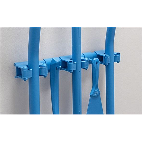 Higienski modularni stenski nosilec oziroma obešalnik, ki zagotavlja prilagodljivo rešitev za shranjevanje vašega čistilnega orodja in pripomočkov na katerem koli delu vašega delovnega mesta. Tirnico enostavno pritrdite na 4 stenske nosilce tako, da jo potisnete z desne ali leve strani. Module Grip Band (oprijem) in Modul Hook (kljuka) lahko nato kliknete na tirnico in jih "zaklenete" na mestu z uporabo ene od številnih majhnih "zarez" v tirnici. To zagotavlja, da moduli ne morejo drseti z ene strani na drugo. Na tirnico je mogoče namestiti in največ 5 modulov za oprijem (VIK1013) ter do 10 modulov kljuka (VIK1012) Modul za oprijem lahko drži izdelke s premerom 28-33 mm. Modul kljuka lahko sprejme izdelke, težke do 3 kg. V kompletu so 3 moduli za oprijem in 2 modula s kljuko ter nosilec ali tirnica. Obešalnik se enostavno razstaviti za čiščenje ali zamenjavo.