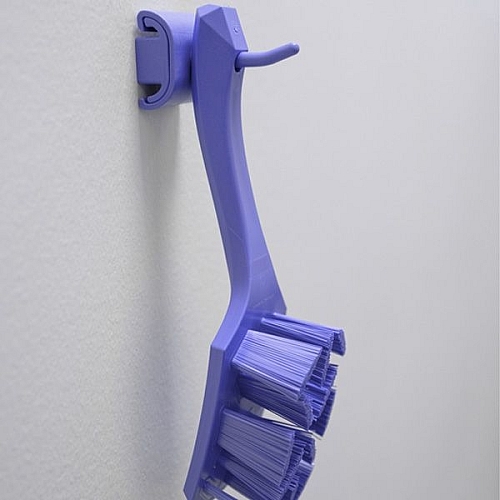 Obešalnik z enim kavljem je zasnovan za obešanje čistilnega orodja z luknjo za obešanje. Kavelj se natakne na priloženo enojno podlago/distančnik z leve ali desne strani. Modul z enim kavljem lahko drži izdelke s težo do 3 kg. Kavelj je enostavno razstaviti za čiščenje ali zamenjavo.