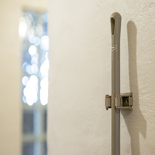 Stenski obešalnik (oprijem) je zasnovan za obešanje orodja brez luknje za obešanje. Modul Grip trak potisnete z držalom na priloženo dvojno podlago/distančnik z leve ali desne strani. Stenski obešalnik, oprijem, lahko drži izdelke s premerom 28-33 mm. Modul Grip Band je enostavno razstaviti za čiščenje ali zamenjavo.