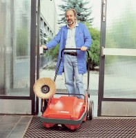 Namestite lahko tako zunanje kot notranje površine. Za zunanje površine predlagamo bencinski stroj, za notranje pometanje pa baterijske stroje. S kompletom za pometanje tekstilnih talnih površin naj bo čistoča znotraj dvoran, sejemskih prostorov in različnih hodnikov. Sistem ima stransko zaščito ščetke, dodatno zaščito filtra in samodejno zaustavitev ščetke, ko stroj ustavite. Če tega ne storite, lahko pride do poškodb tal. Stroj ima delovno širino od 60 do 85 cm, predprostor 200 m2, ga lahko očistite v manj kot 5 minutah.