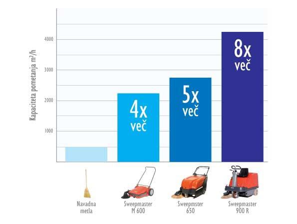 Glede na kapaciteto pometanja so naši pometalni stroji večkrat bolj učinkoviti od navadne metle.