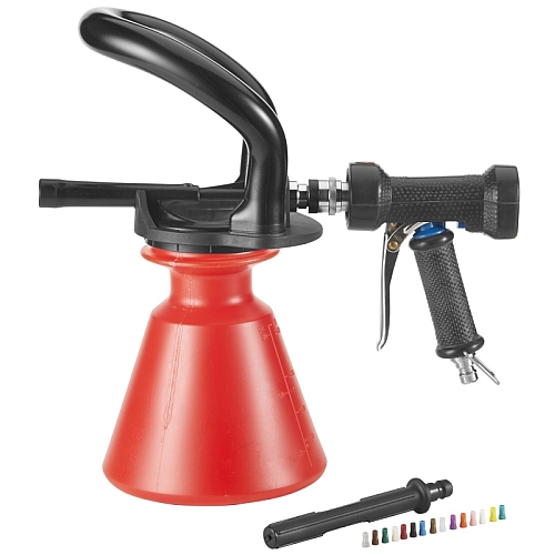 Komplet za čiščenje s peno za enostavno čiščenje večjih površin. Uporablja se lahko za čiščenje v živilski industriji, fitnesih, bazenih, sanitarijah, garderobah in drugod. Sistem dozira čistilo v koncentraciji, ki jo nastavite s pomočjo dozirnih šob (0,4–10 %). Zdrži 8 barov pritiska in ima ergonomski oprijem, ki ne zdrsne, tudi ko je moker. Vsaka različica je na voljo v 5 barvah in ima komplet 15 barvno kodiranih šob za različne koncentracije kemikalij.