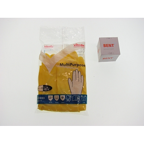 Rokavice iz naravnega lateksa. Rokavice so odporne na čistila, rastlinska olja in mastna živila. Barva: rumena. Velikost : L