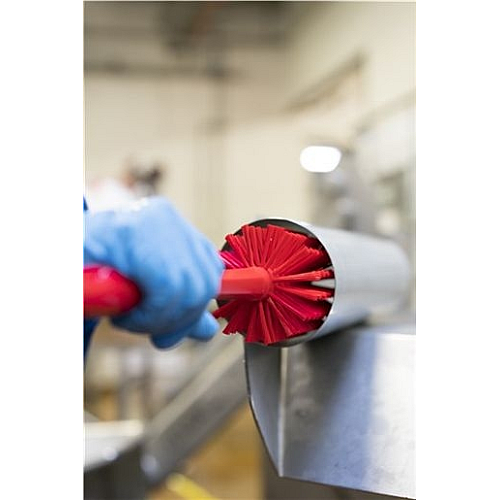 ŠČETKA ZA CEVI Z ROČAJEM, SREDNJA /TRDA, fi90cm. Izdelana brez spojev med glavo ročaja in ščetko. Pri čiščenju je vrh ščetke tisti, ki opravi večino čiščenja, zato so na glavi ščetke trše ščetine kot na spodnji strani, kar omogoča, da očistite hitro in učinkovito.