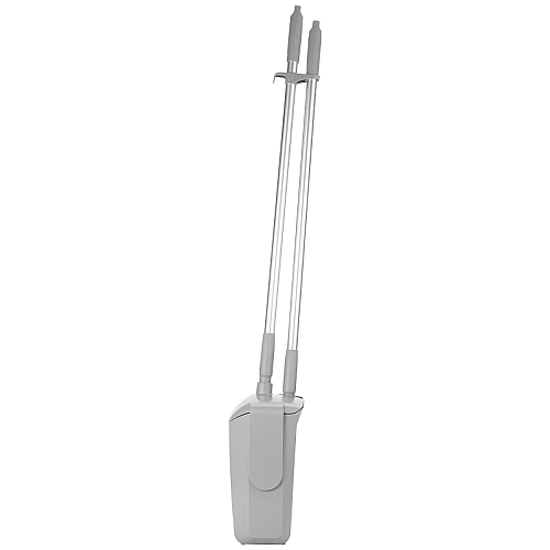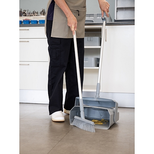 Posebno oblikovana smetišnica omogoča enostavno pobiranje smeti. Po pometanju smetišnico zapremo ter jo postavimo navpično ali vodoravno - samostoječi sistem. V kompletu je tudi kotno oblikovano omelo , ki omogoča fino ter grobo pometanje, tako suhih kot mokrih delcev.