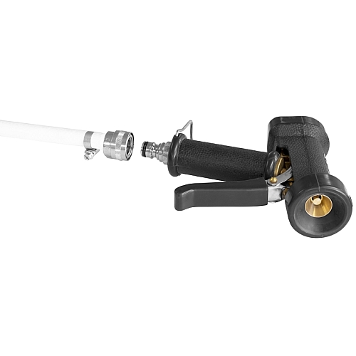 Šobo je mogoče priviti neposredno v vodno pištolo, 9324x. Lahko se priključi na cevi s cevno spojko, nameščeno 881701, ali na cev, ki uporablja cevne spojke Hoselock/Gardena. Nizka vsebnost svinca.