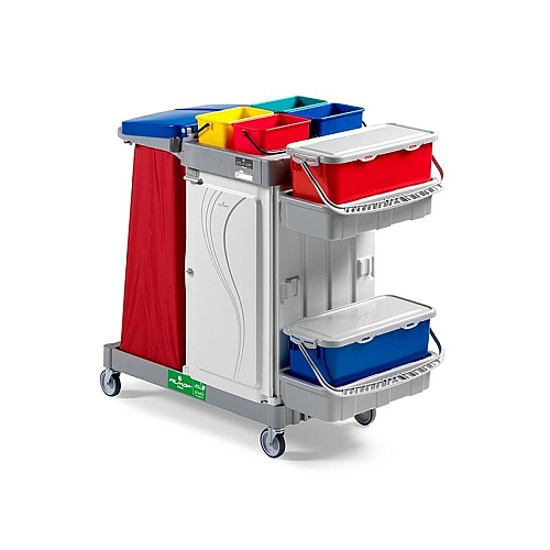 Večnamenski voziček idealen za zbiranje odpadkov , talno čiščenju ali razkuževanje v bolnišnicah , domovi , klinike, itd ..